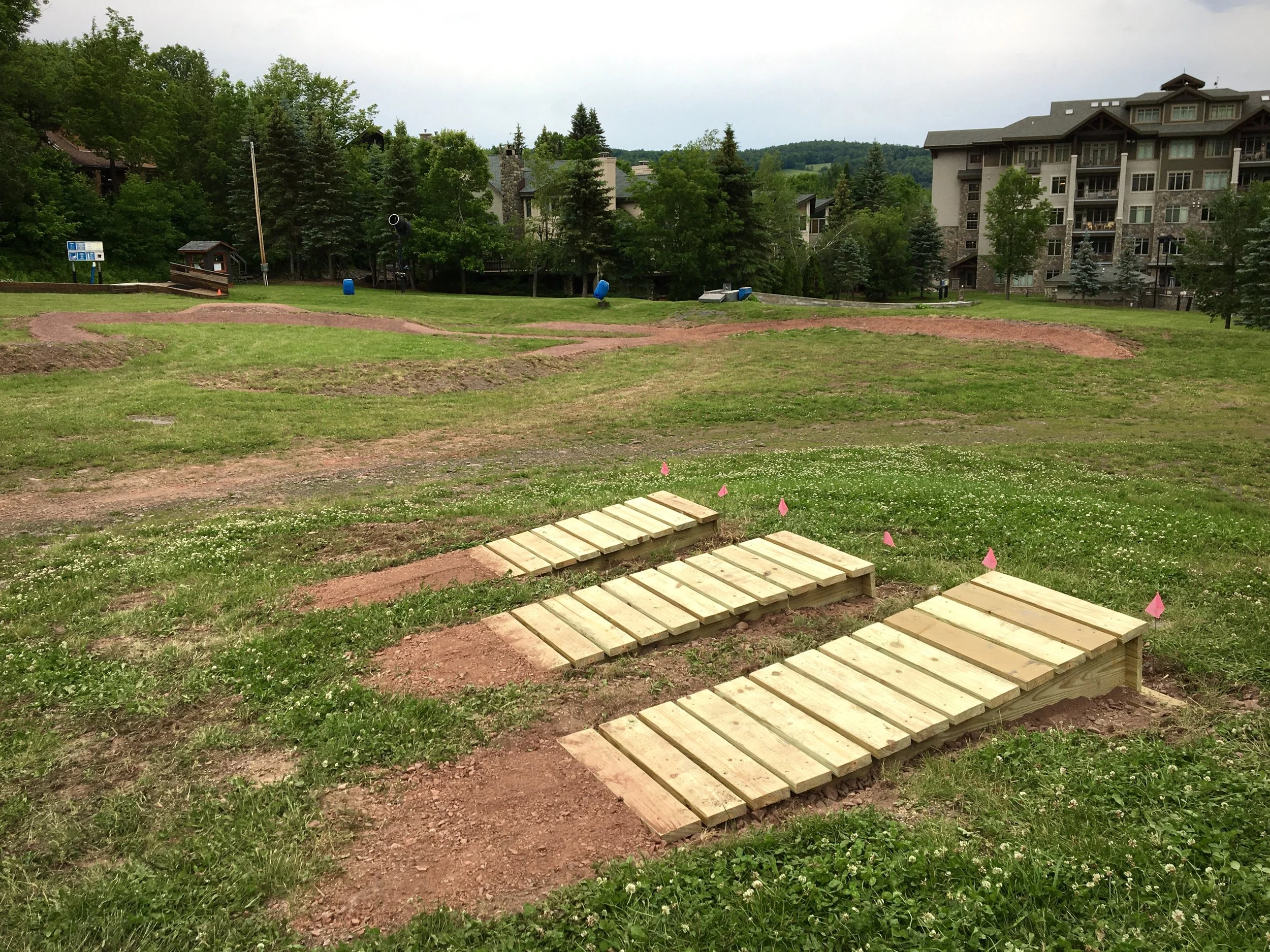 Design and Construction of a Beginner to Intermediate bike skills park at the base of the ski mountain and the Wilbur Flow mountain bike trail in Windham, NY.